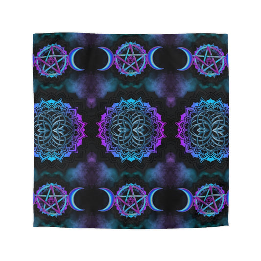 Mystical Dreamscape Microfiber Duvet Cover, Bohemian Bedding, Celestial Decor, Moon and Mandala Design, Witchy Home Accents, Cozy Bedroom