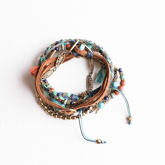 Teal Multi Stacked Suede Bracelet | Stackable Fashion Jewelry