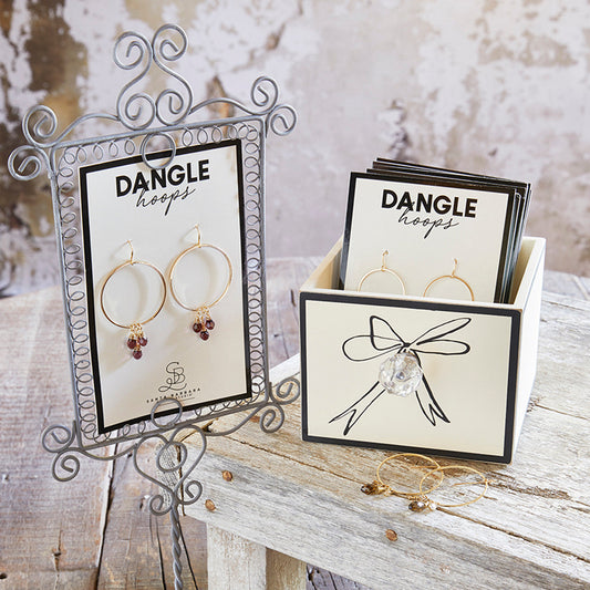 Silver Smoke Dangle Hoops Earrings in Gold | Glass Crystal Gemstones