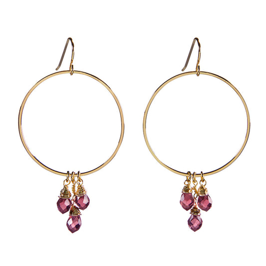 Violet Glass Beads Dangle Hoops Earrings | Glass Crystal Gemstones