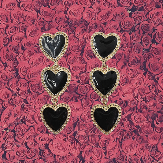 Charcoal Dangle Hoops Earrings in Gold | Cut Glass Crystal Gemstones