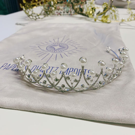 The Age of Pearls Crown Tiara in Silver | Royalty Crown Party or Bridal Hair Accessory