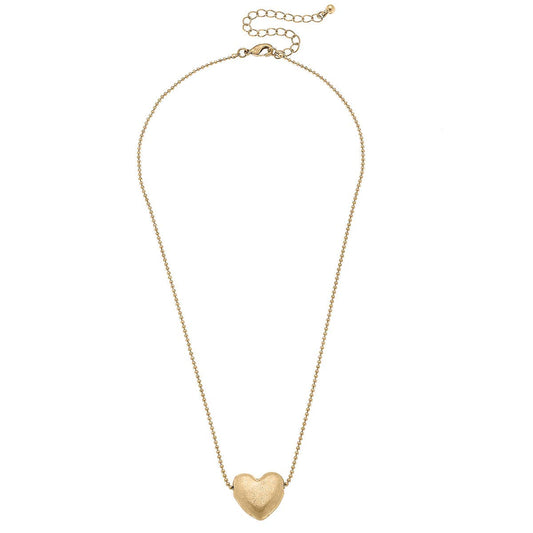Margo Puffy Heart Necklace in Worn Gold | Bead Chain Style Pendant Fashion Jewelry