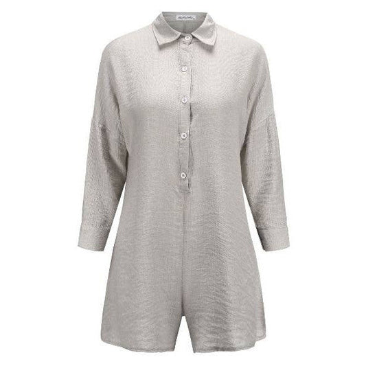 Miss Sparkling Button Shirt Cozy Rompers in Grey | One-Piece Long Sleeves Apparel [Size SM-XL]