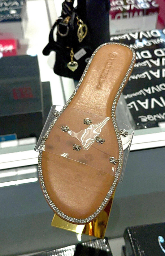 Clear Bow Glamour Slip On Cushioned Summer Slides