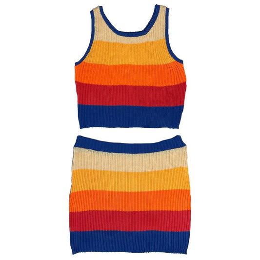 Miss Sparkling Rib Knit Set Skirt and Top | Orange and Blue Stripes [Sizes L and XL]