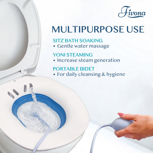 Fivona Sitz Bath Soak Seat | Portable Bidet | Yoni Steam Tub (White-Blue)
