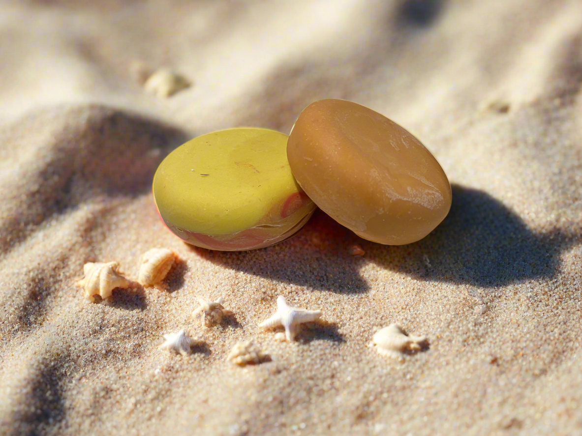 The round travel soaps may vary in terms of design and color due to the process of pouring them with leftover batter. While they may not be as perfect visually, they are ideal for carrying in a soap bag while traveling.
