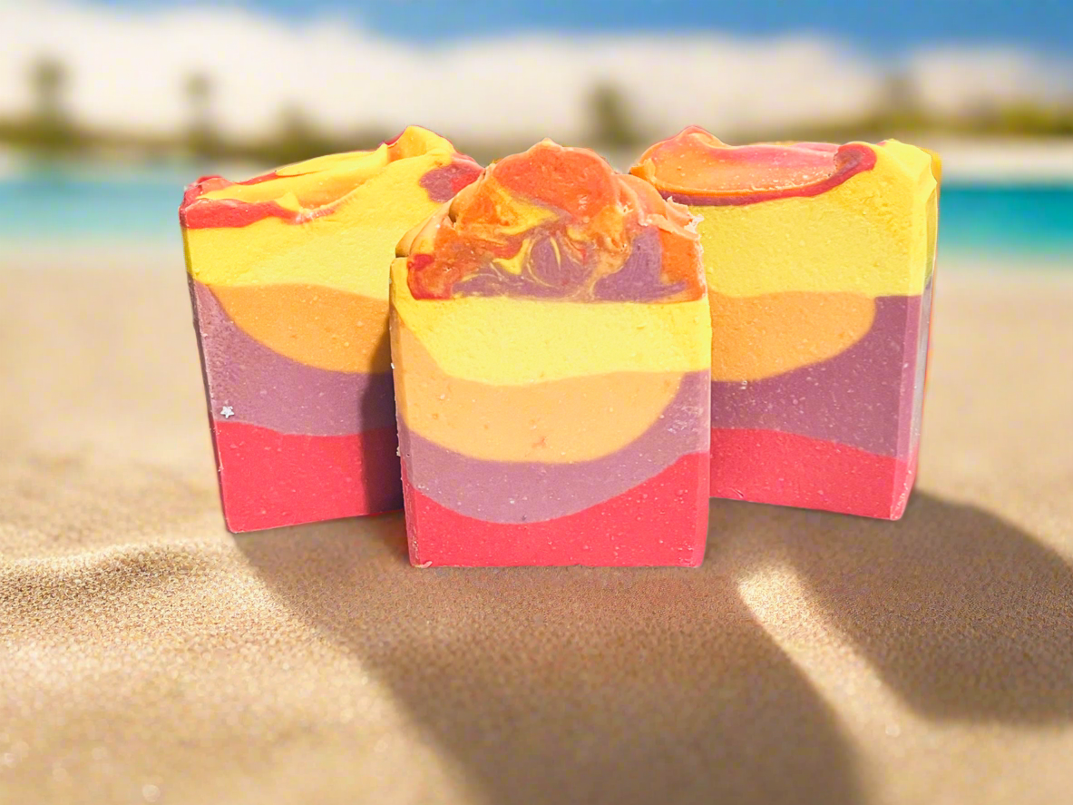 Indulge in this luxurious goat milk soap, enriched with nourishing kokum butter. Immerse yourself in the essence of the tropics with a tantalizing fusion of island fruits, creamy coconut, sweet rum, and a touch of vanilla.
