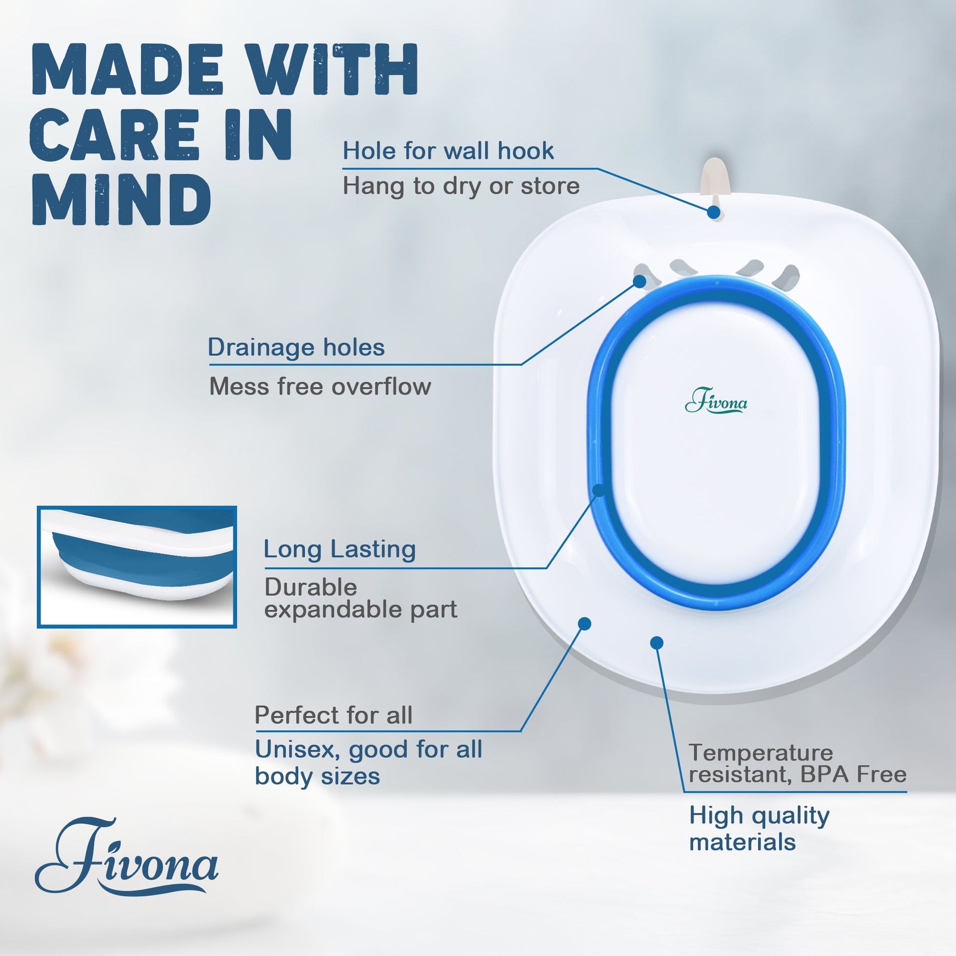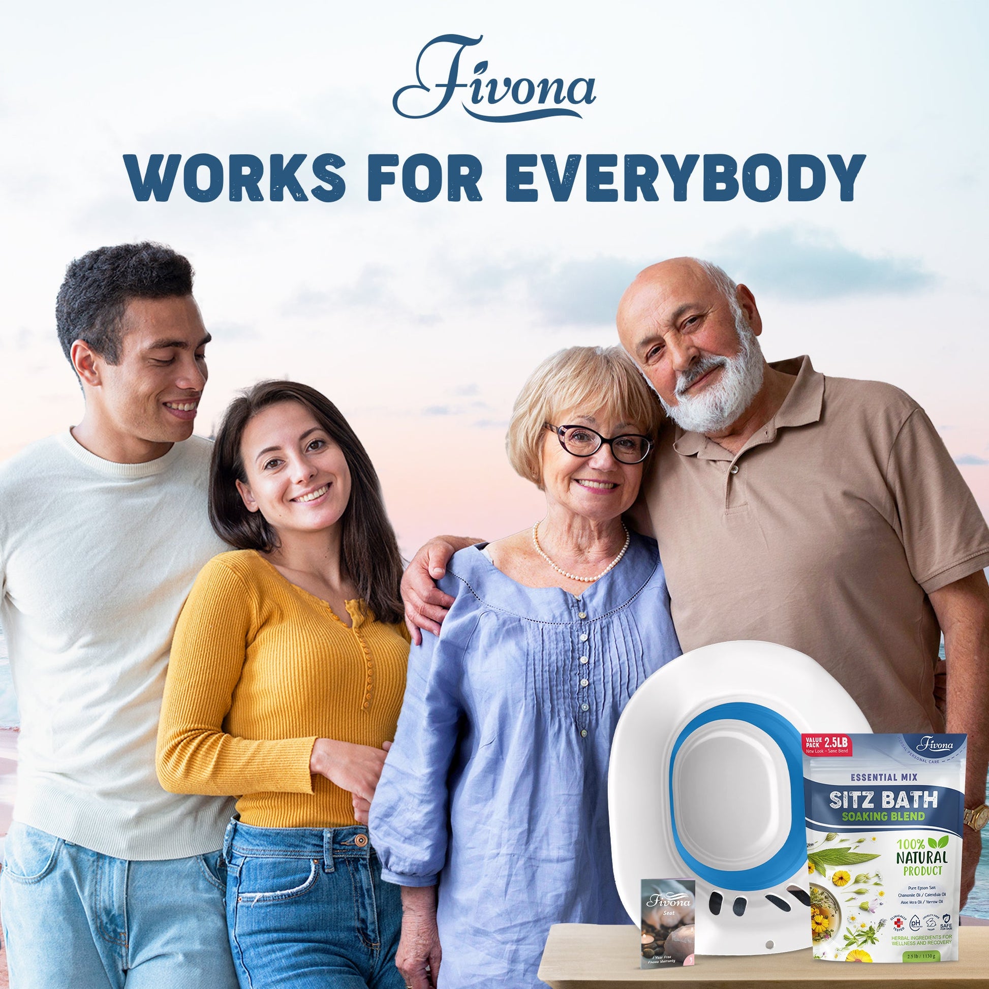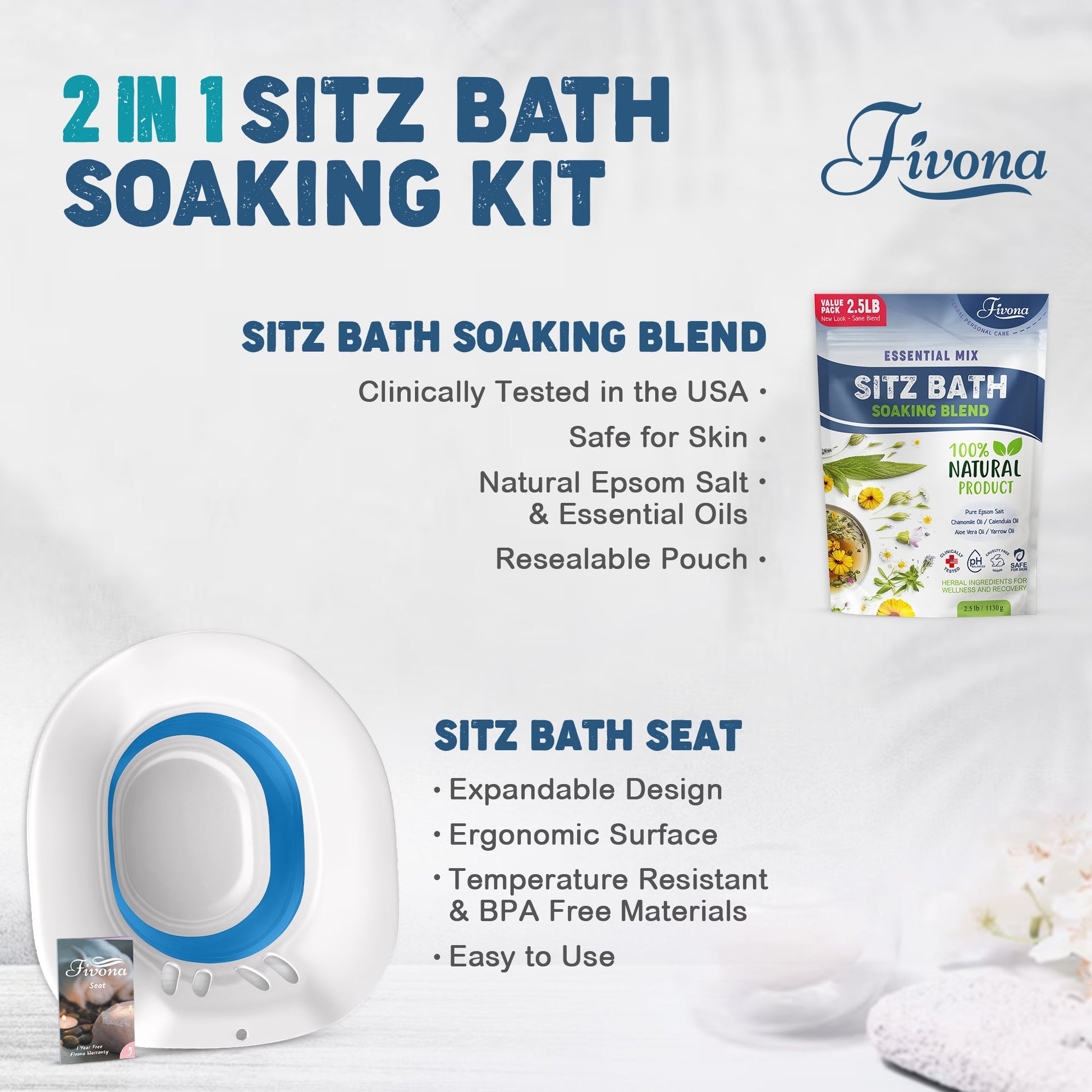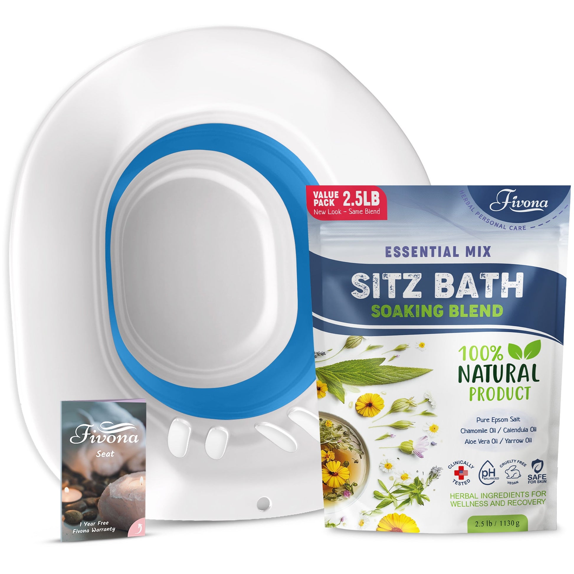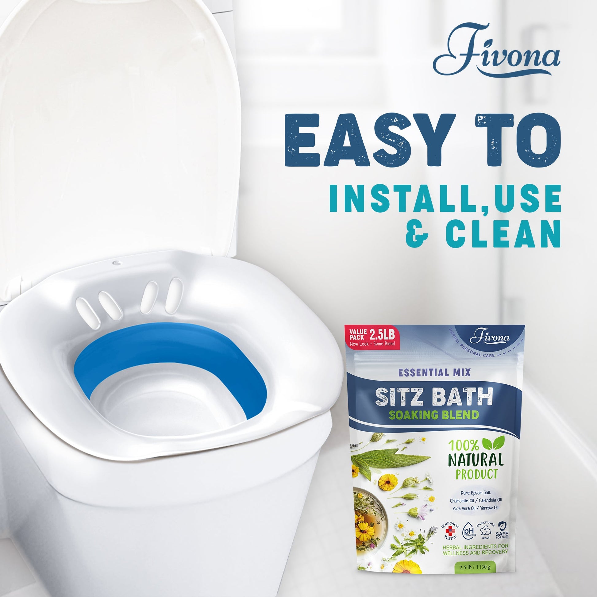 āļøĀ The kit comes with a durable, comfortable Sitz Bath Seat and a value pack of Soaking Blend Epsom Salt with Essential Oils. Fivona Sitz Bath Soaking Kit can provide relief by reducing swelling and improving blood circulation. The warm water with a soaking blend helps relax the muscles, ease discomfort, and reduce the pain of hemorrhoid symptoms. It can ease pain from anal fissures, prostatitis, and bartholin cysts.