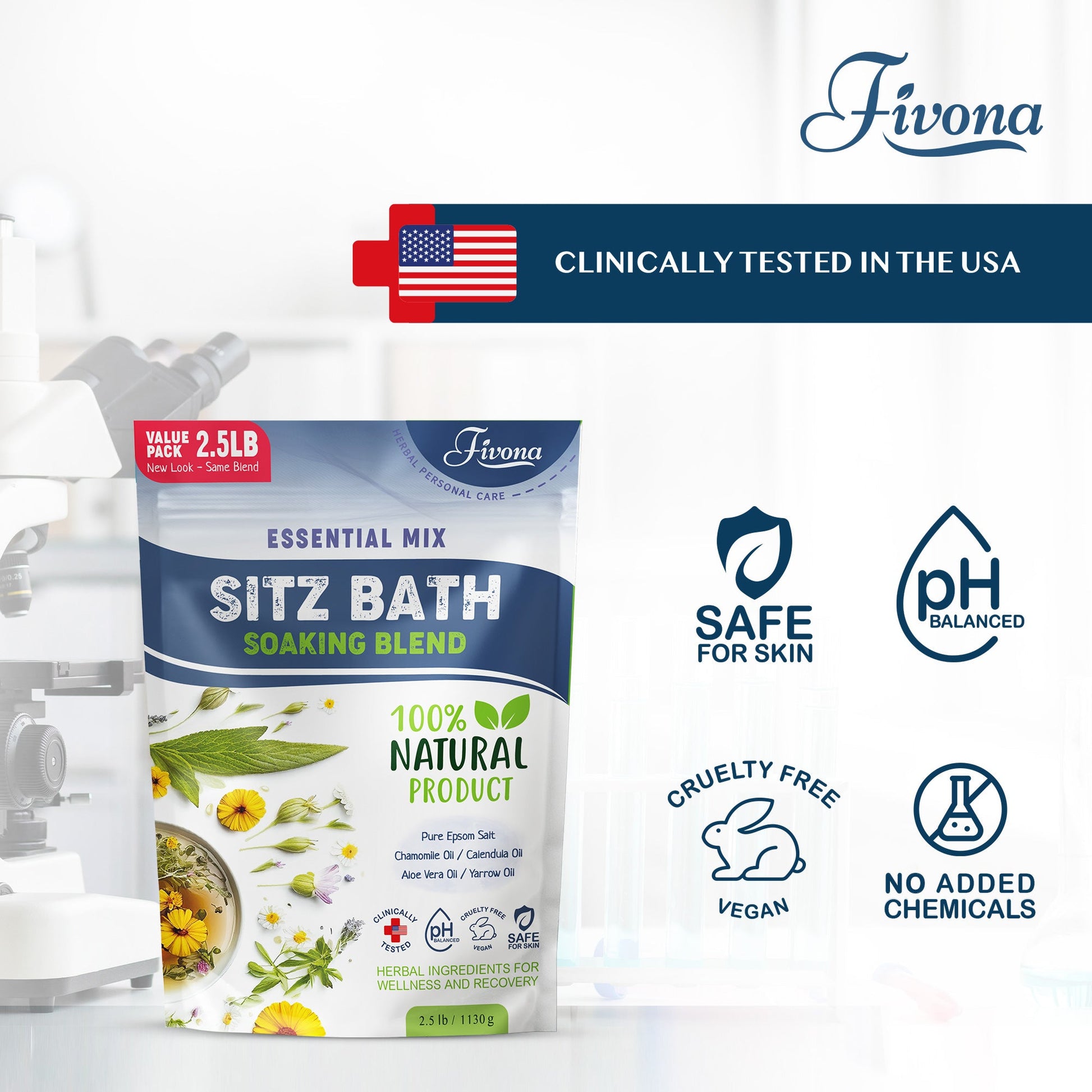 š· The rich formula of Fivona All Natural Sitz Bath Soak Blend combines carefully selected 100% natural ingredients helping to calm affected areas and promote wellness sensation throughout the body. The mix is vegan, has no additives, and cruelty-free. Experience an organic detox with no harsh ingredients. A large 2.5 Lb pouch of soaking blend ensures you have enough product on hand to enjoy the benefits over an extended period of time.