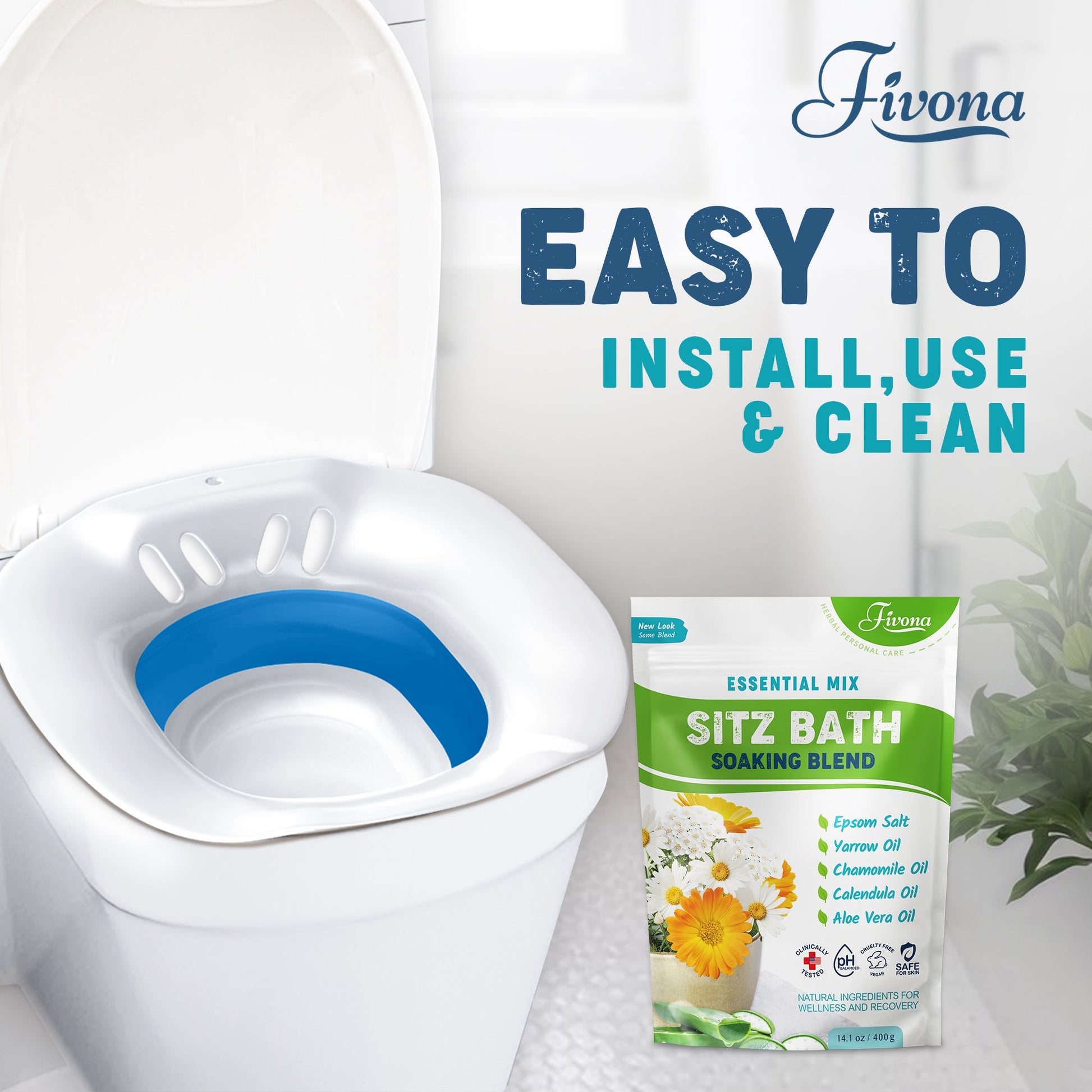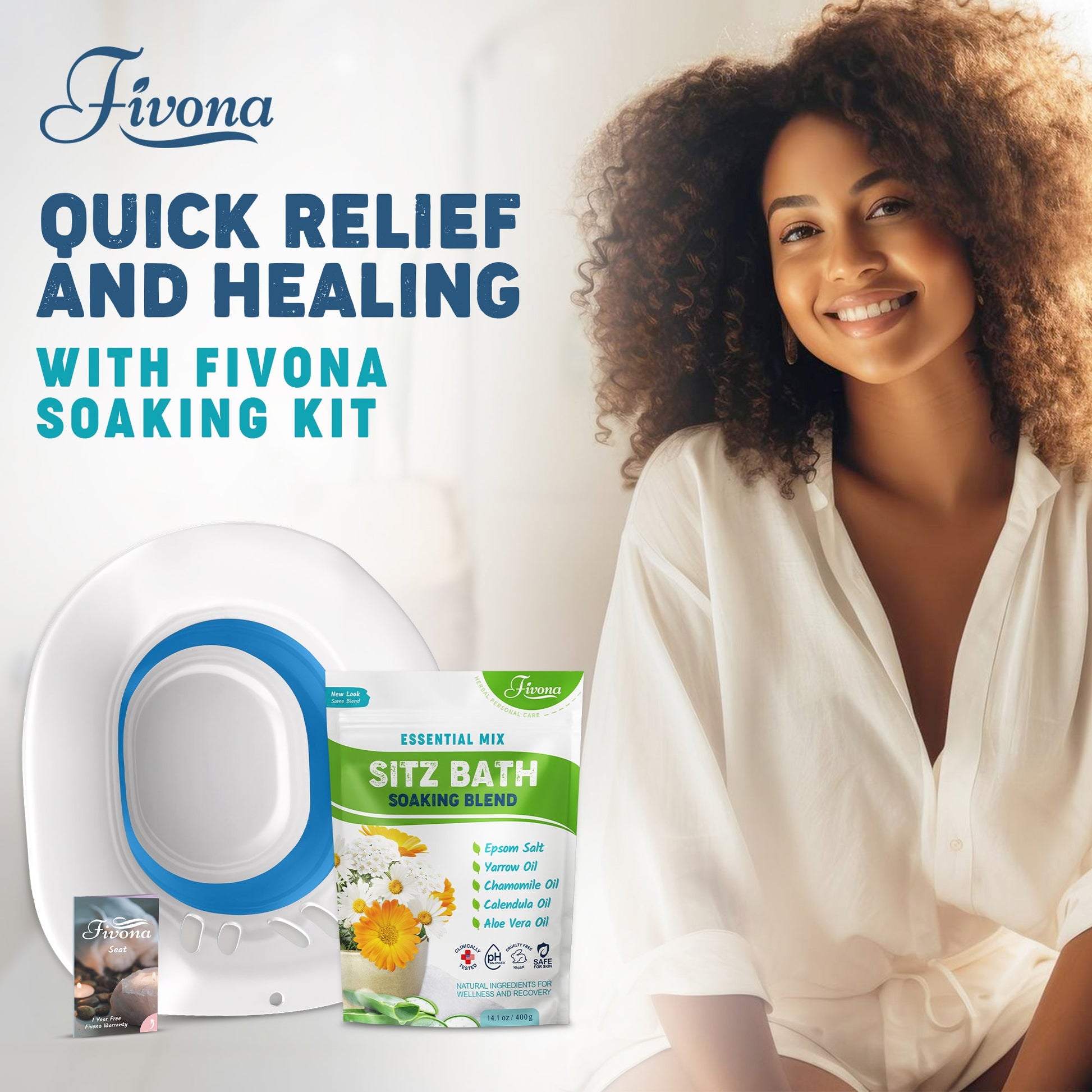 Fivona 2 in 1 Sitz Bath Soak Kit Bundle of Expandable Unisex Seat and Fivona Epsom Salt with Pure Essential Oils Soaking Blend