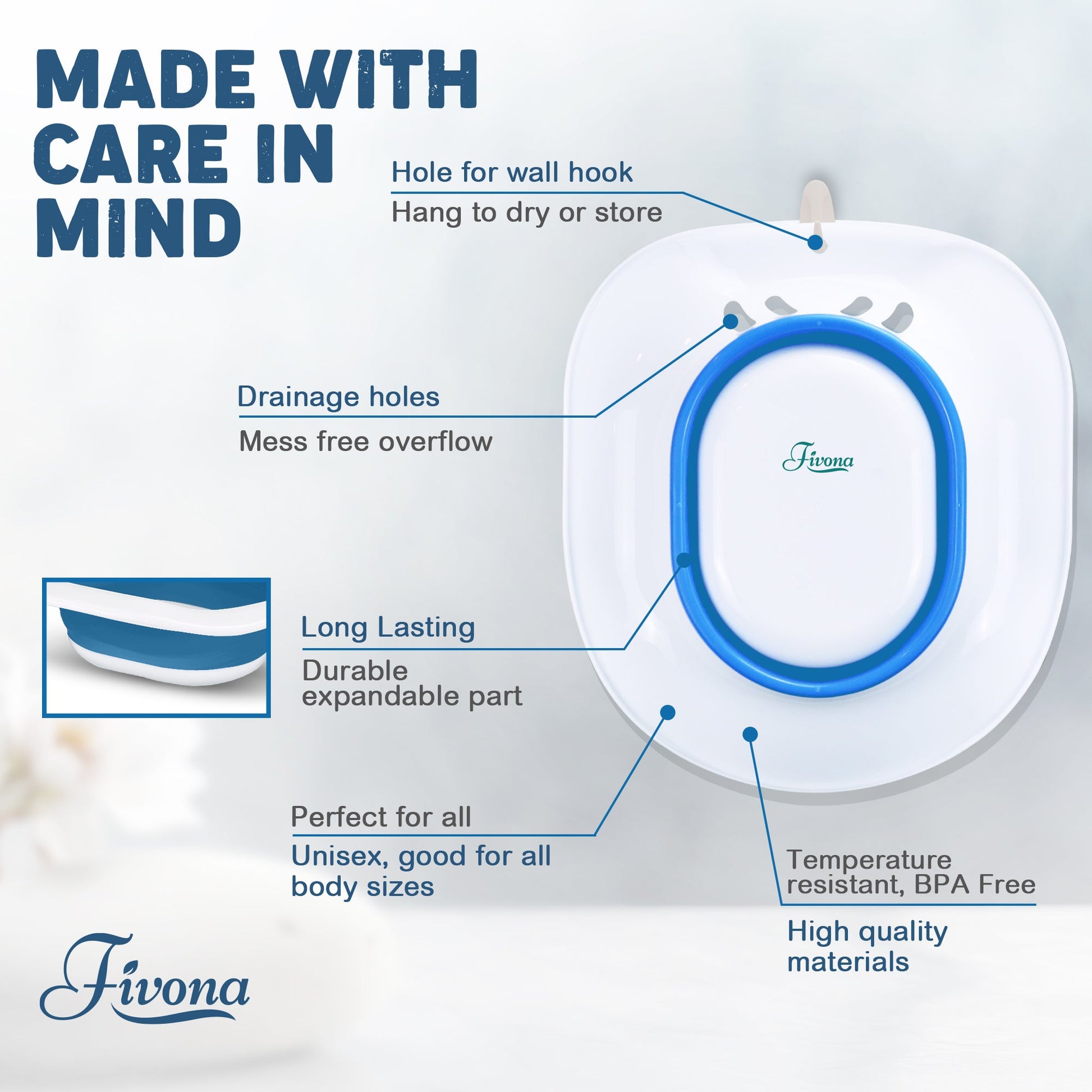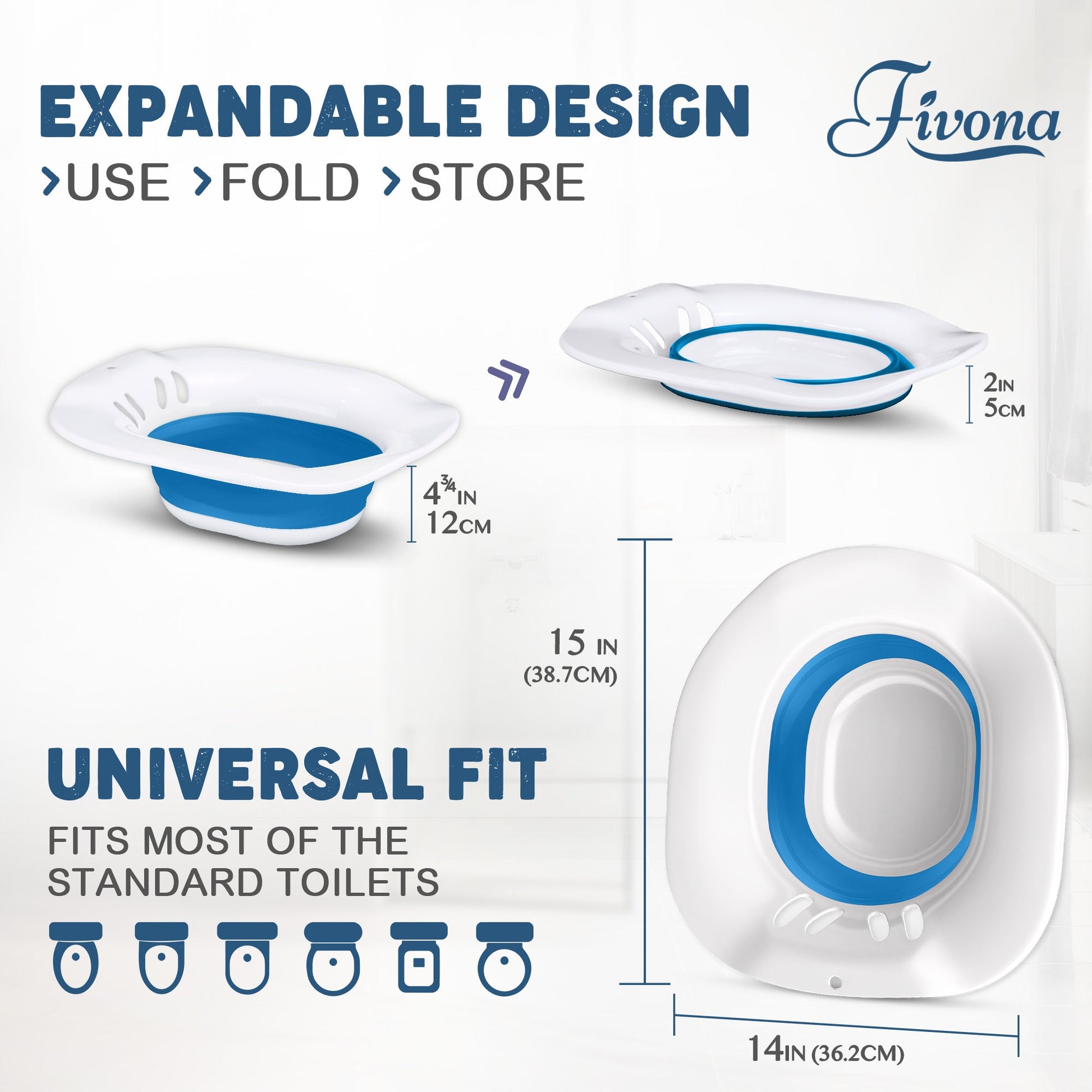 🌻 With Fivona Expandable Sitz Bath Soak Kit, you can enjoy soaking your most delicate area whenever you want or need it! Fivona Expandable Seat is intended to be compatible with any round, oval or elongated toilet seat. It is also designed to fit any body size and provides a comfortable sitting during a long period of time. It has a foldable design which makes it super easy to store while it is not in use.