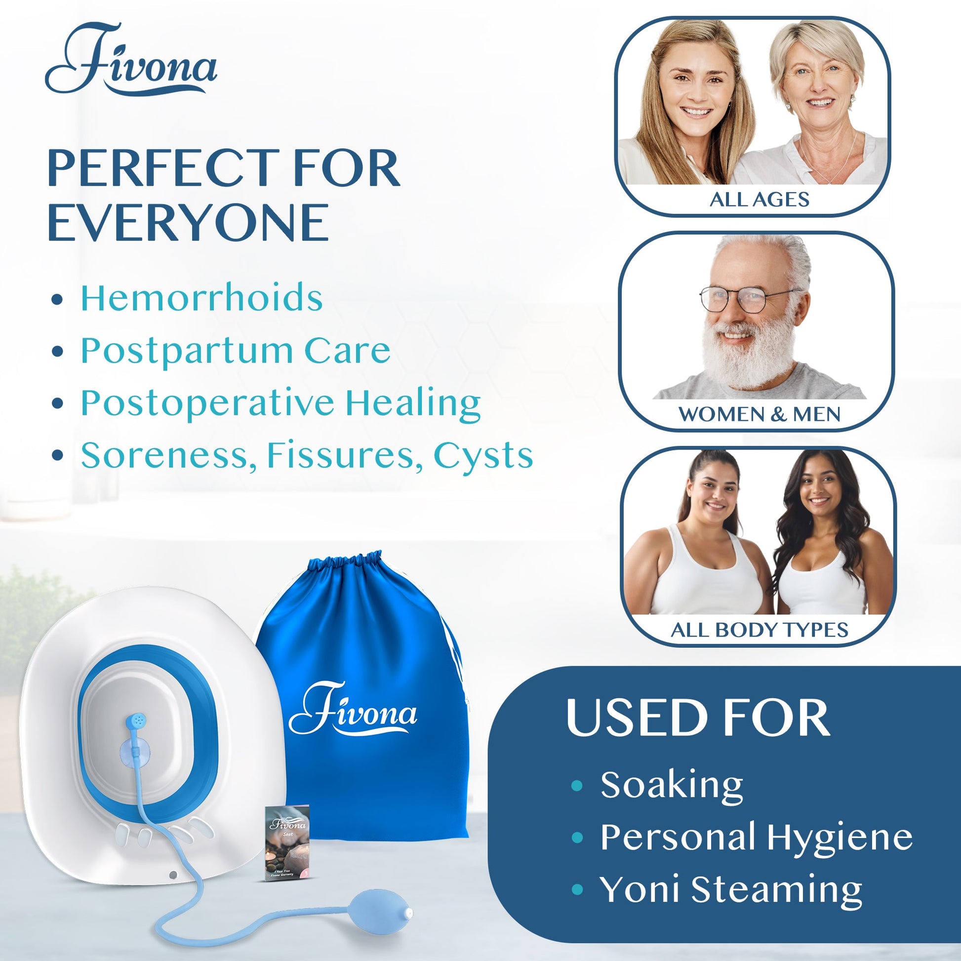🌸 With Fivona Expandable Sitz Bath Soak Kit you can have a more comfortable and easy way to soak your most intimate area compared to sitting in a bathtub. If you don't know how to perform these procedures, don't worry! The seat comes with a quick step-by-step instructions on how to perform both procedures.