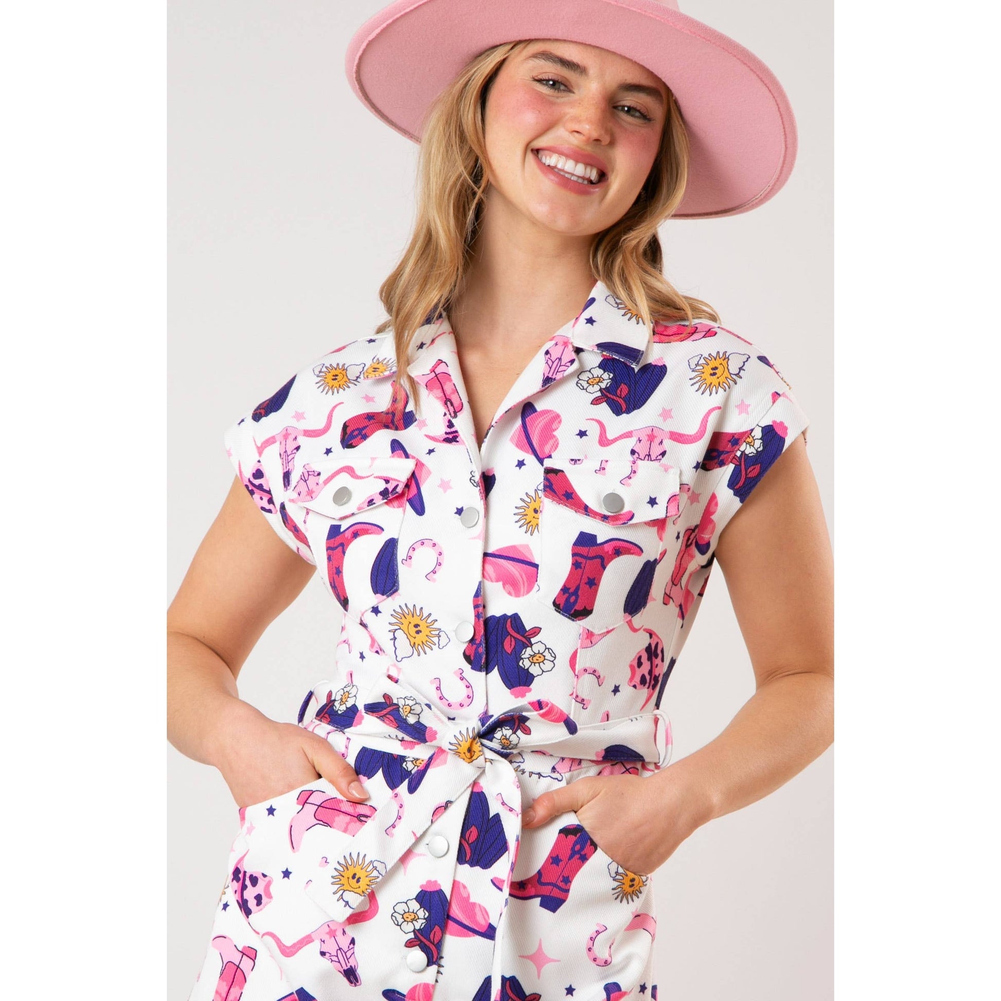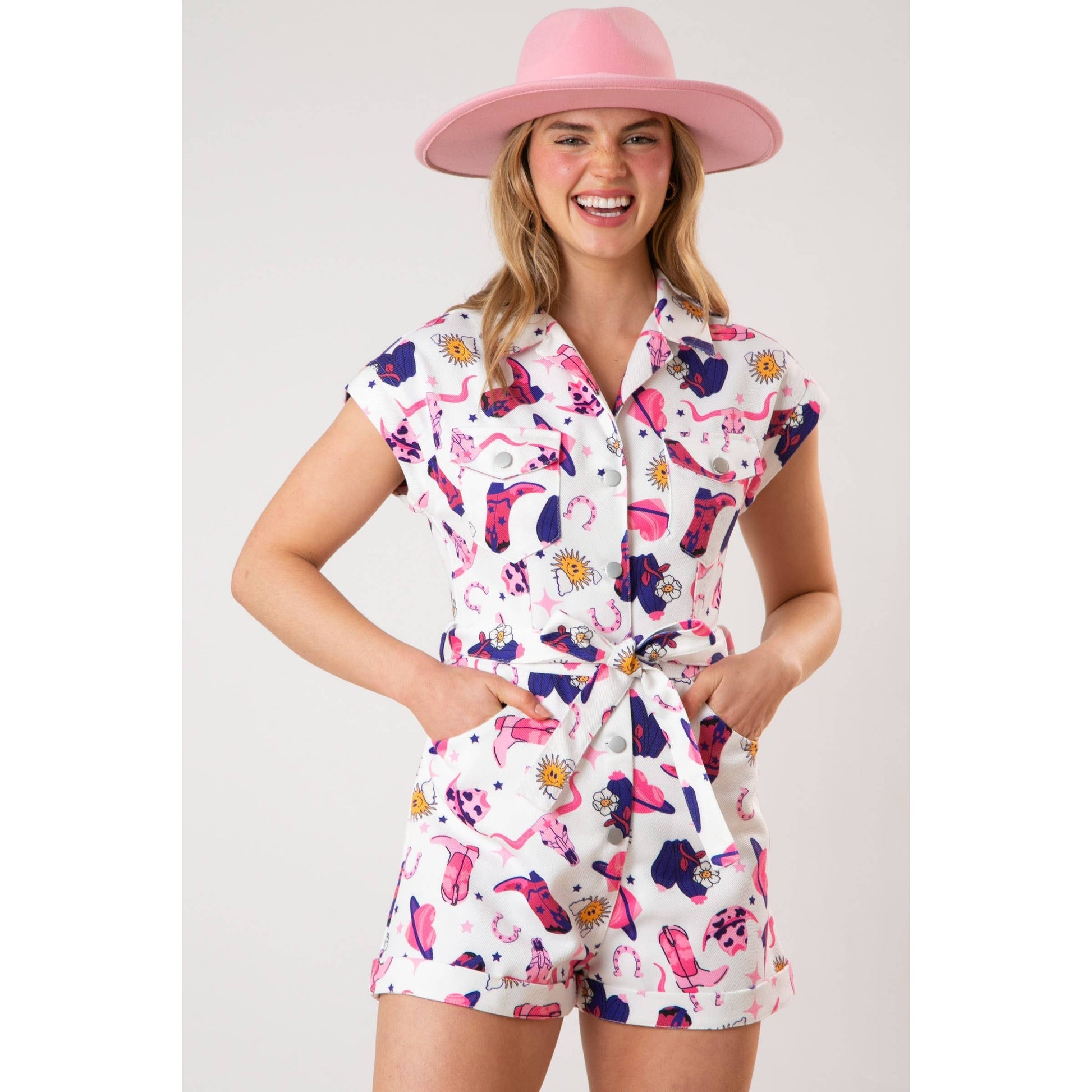 All Over Boots Print Romper | Western Cowgirl Apparel [Sizes SM-L]