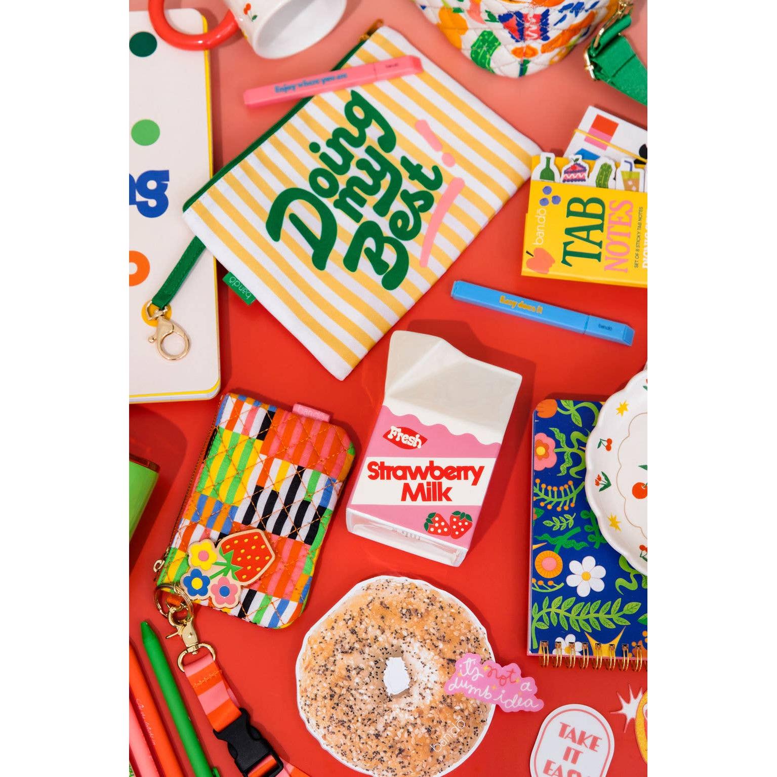 Ban.do Zip ID Lanyard in Black Stripe with Charm | Badge Holder Zippered Pouch with Keychain