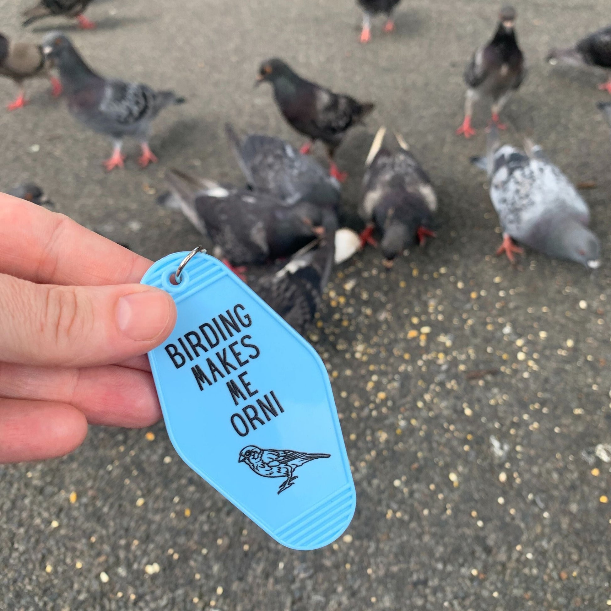 Birding Makes Me Orni Birdwatching Pun Motel Keychain