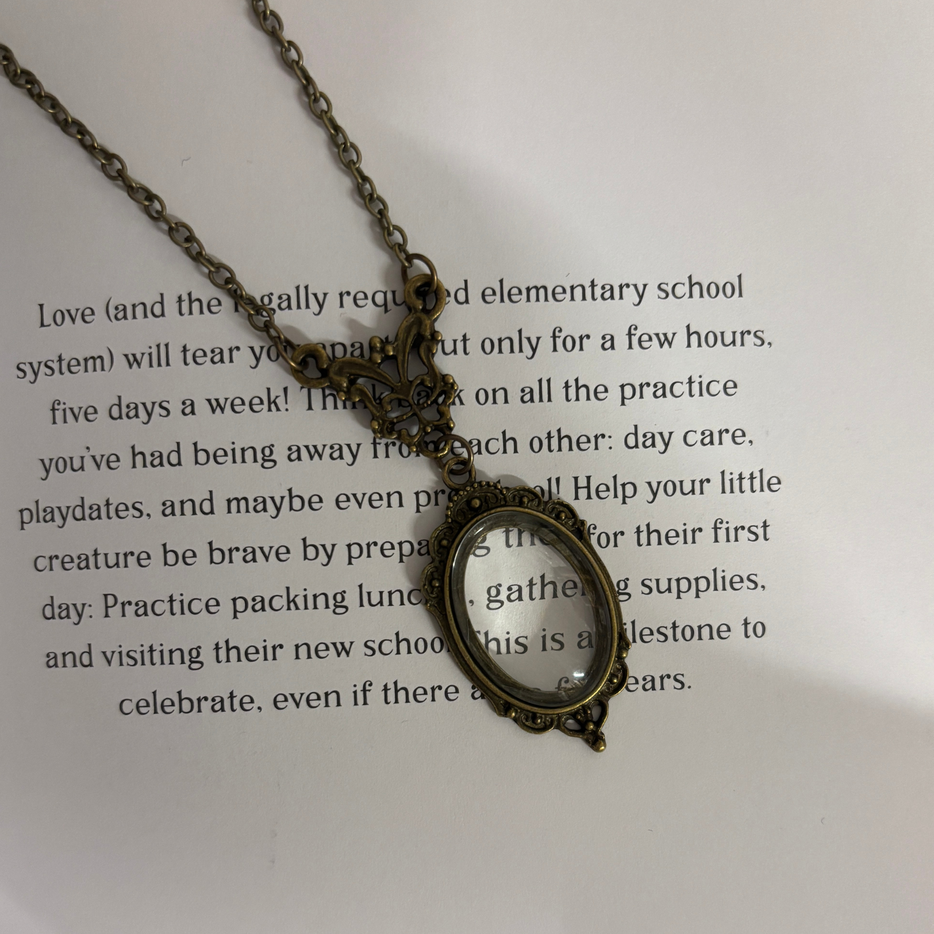 Please note, this is a functioning magnifying glass, but it cannot be used while being worn due to the short chain length,