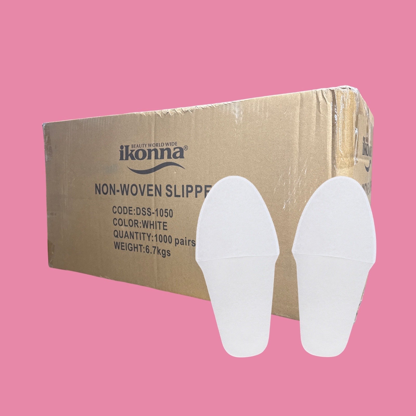 Step into comfort and fun with this 40-pack of white disposable pedicure slippers! Perfect for salons or at-home pampering, these slippers keep your feet cozy and clean during treatments. Lightweight and easy to slip on, they add a playful touch while protecting freshly polished nails. Treat your toes to a little luxury without the fuss!