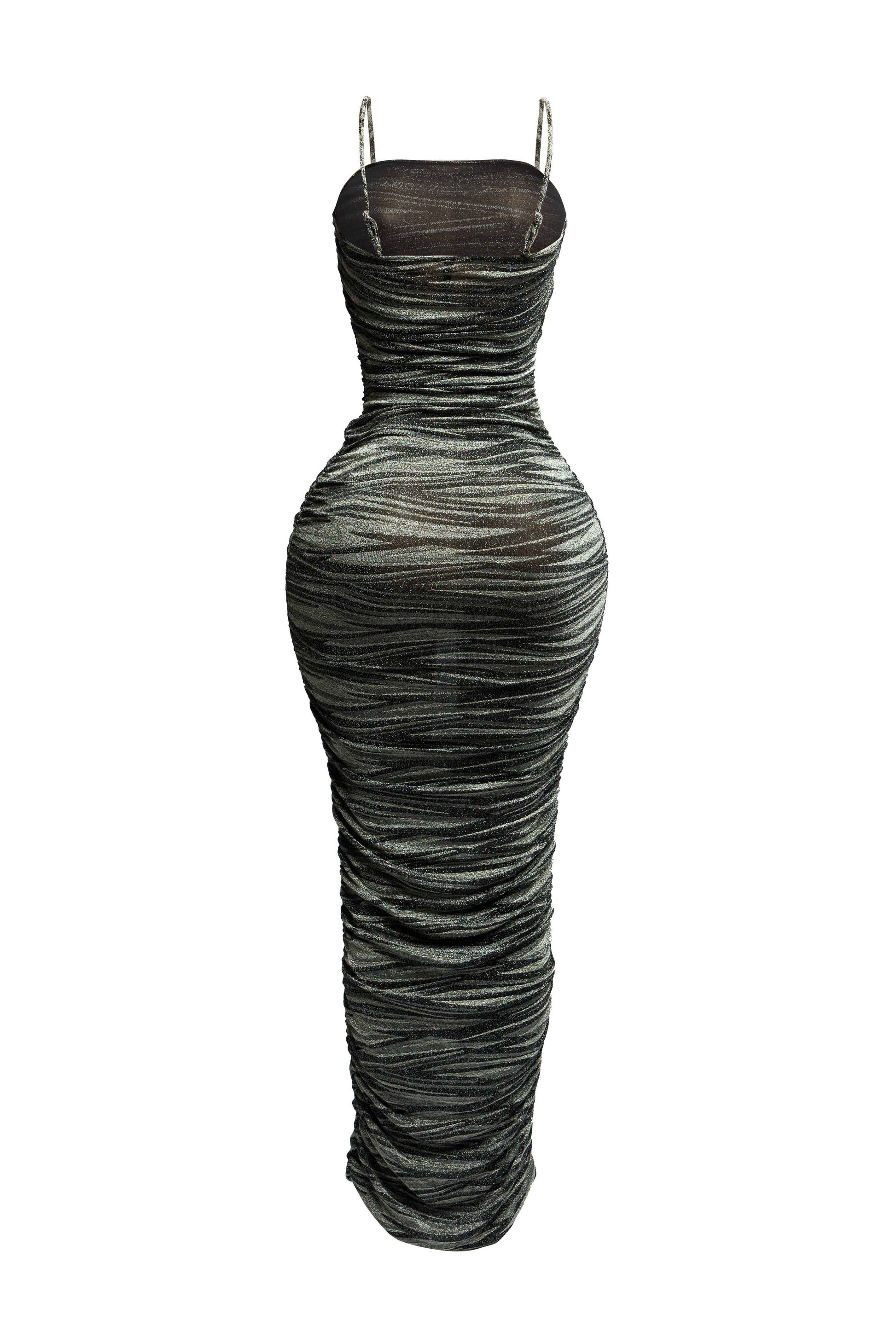 Elegant Metallic Maxi Dress with All-Over Ruched Design and Adjustable Straps for Stunning Appeal