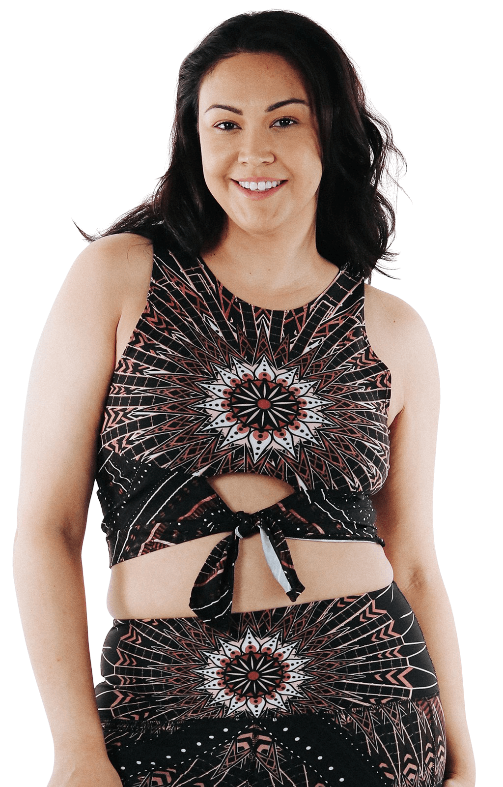 Introducing the Ready or Knot Tank, a truly versatile tank top that offers double the style options. This reversible top features a tie detail that can be worn in the front OR back, creating a chic peephole effect. With both sides including a high neck and full coverage, this piece provides a sleek and flattering silhouette from every angle. Cropped to sit above the belly button, this tank pairs perfectly with high-rise leggings or shorts, making it an ideal choice for workouts and casual outings alike. Embrace spontaneity and innovation with our new Ready or Knot Tank!