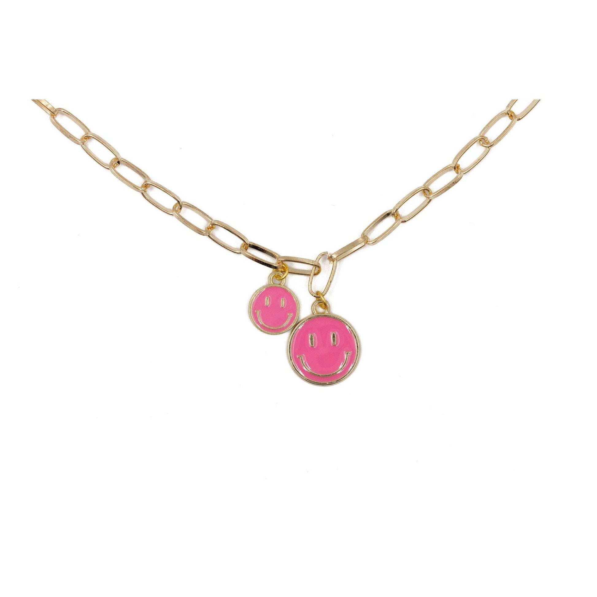 Brighten up your outfit with this double smiley face necklace!