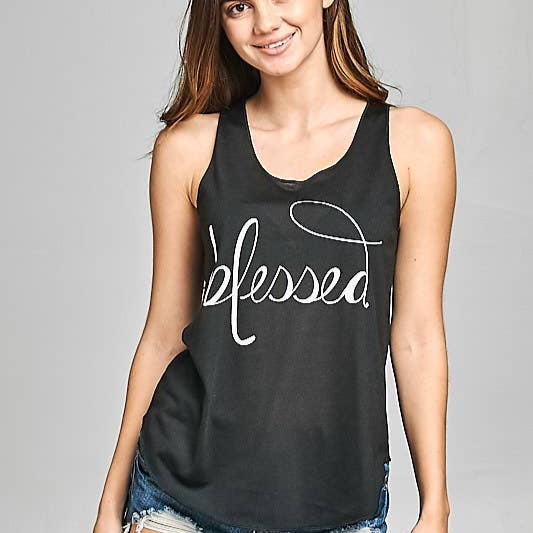 Immerse in the casual aesthetic with "Blessed" Graphic Tanktop!