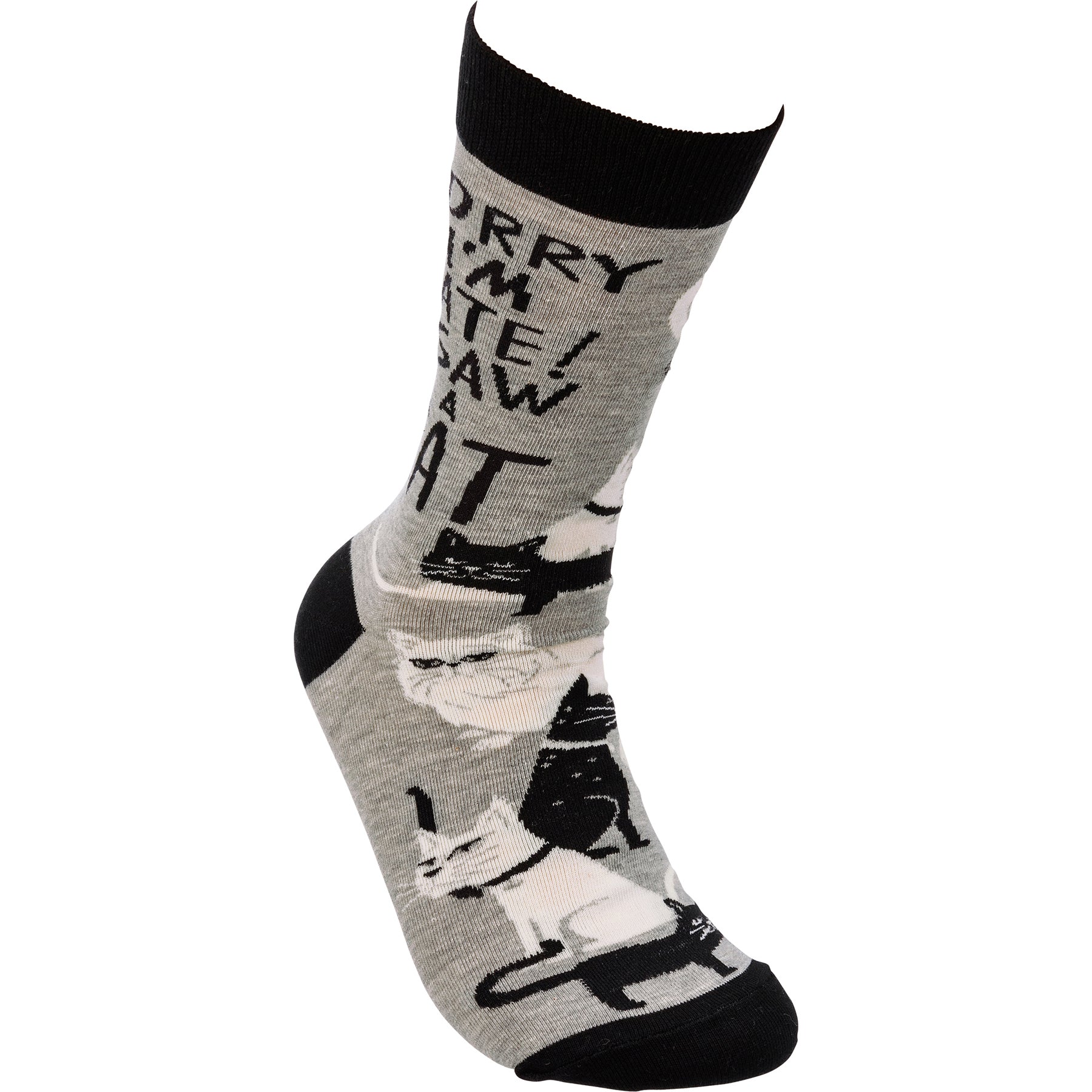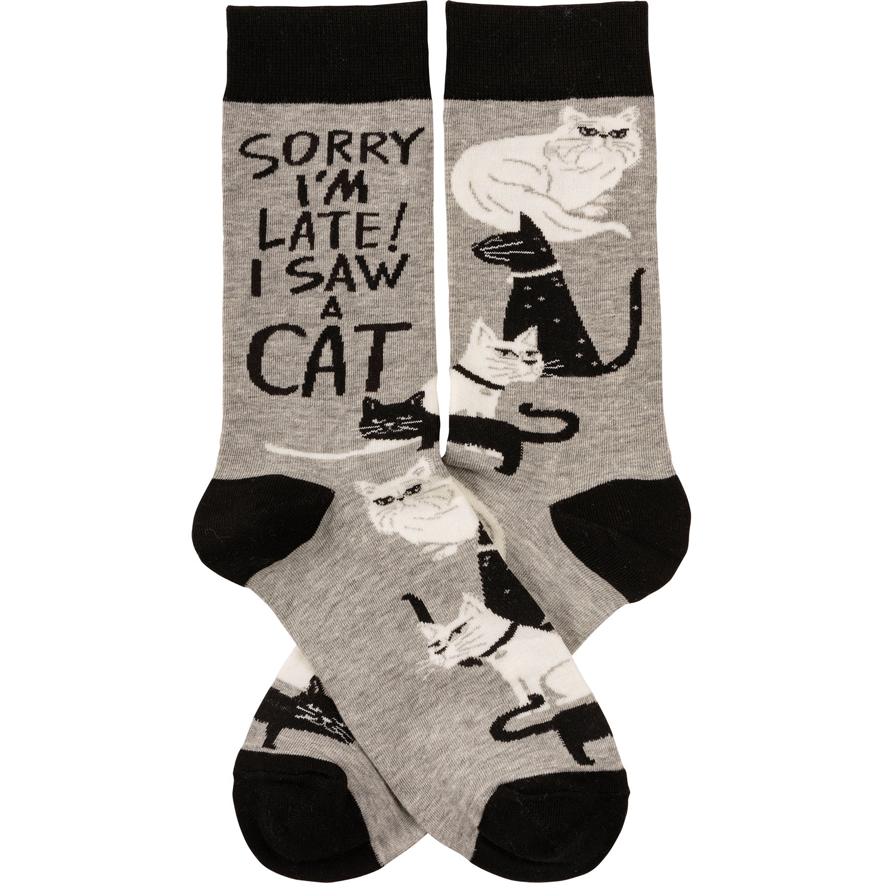 Sorry I'm Late I Saw A Cat Woven Socks | Black & White Cats Designs Novelty Socks