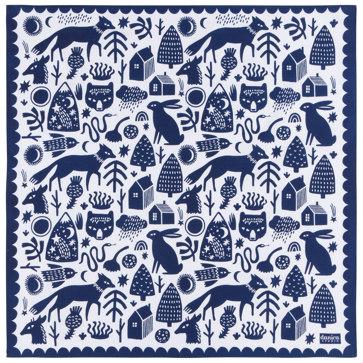 This Timber Bandana revisits tales of the past with folkloric block-print silhouettes in blue.