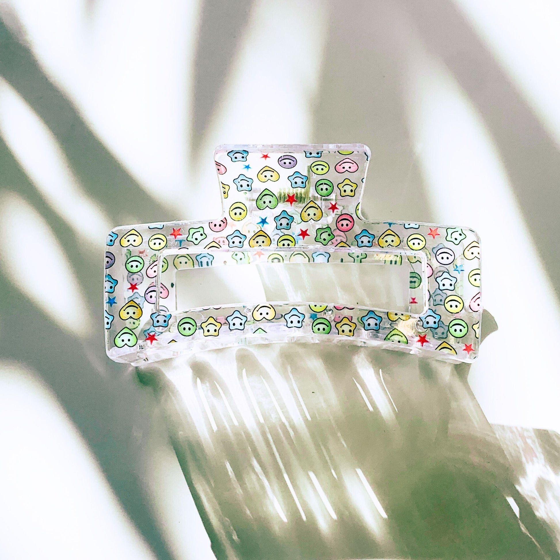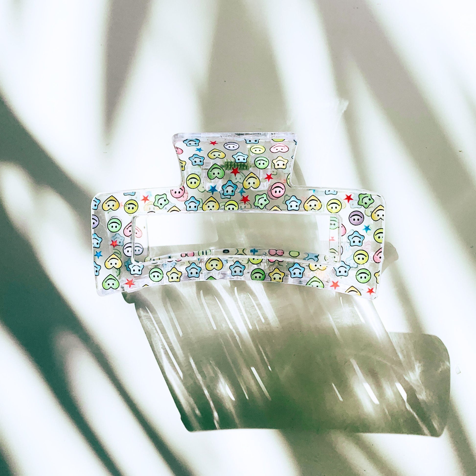 Get ready to spice up your hairstyle with cute smileys, stars and hearts embellishing this beautiful hair claw!