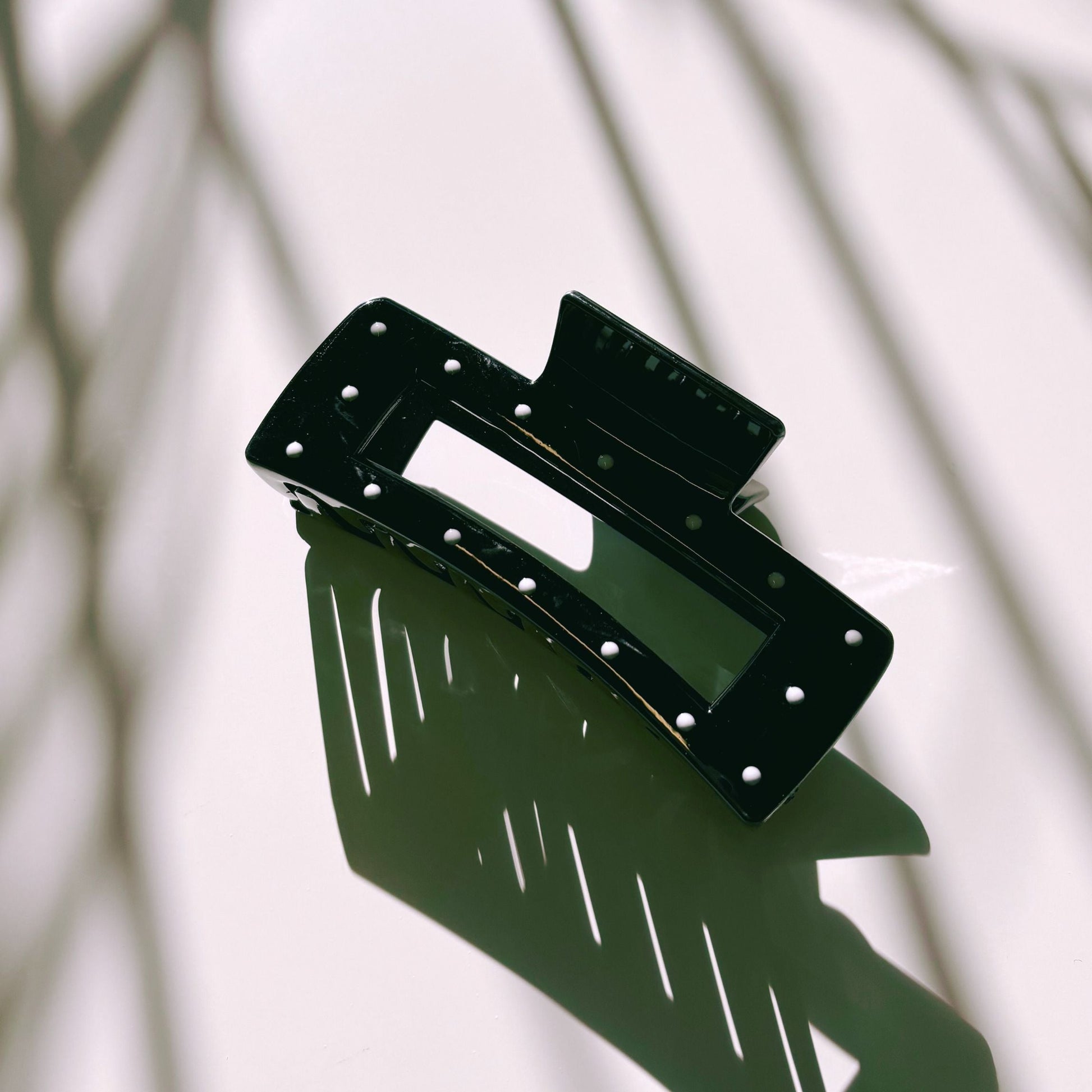 Classic elegance meets modern charm in this sophisticated claw clip. Featuring a chic black dot design, it offers a secure yet stylish hold for any hair type. Complete with a velvet travel bag, it’s the perfect accessory for effortless, on-the-go glam!