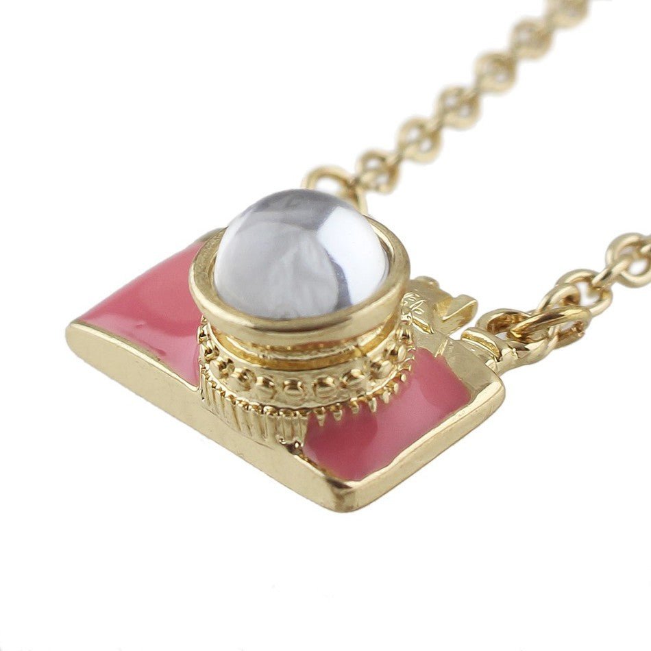 Wanderlust Camera Necklace in Pink and Gold