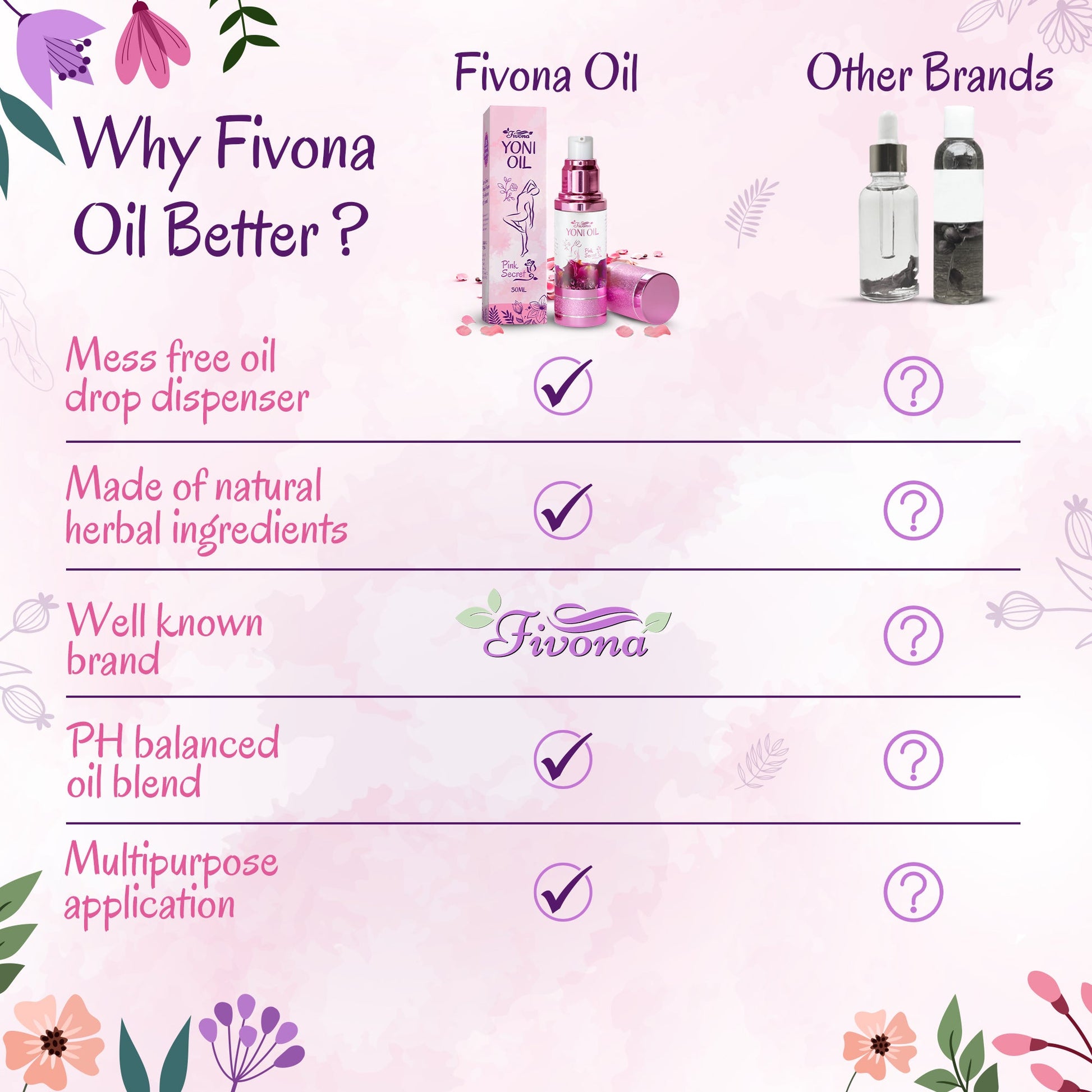 Fivona Yoni Oil Pink Secret Is A Specially made feminine product to help empower women to regain confidence when it comes to their hygiene and during intimate moments