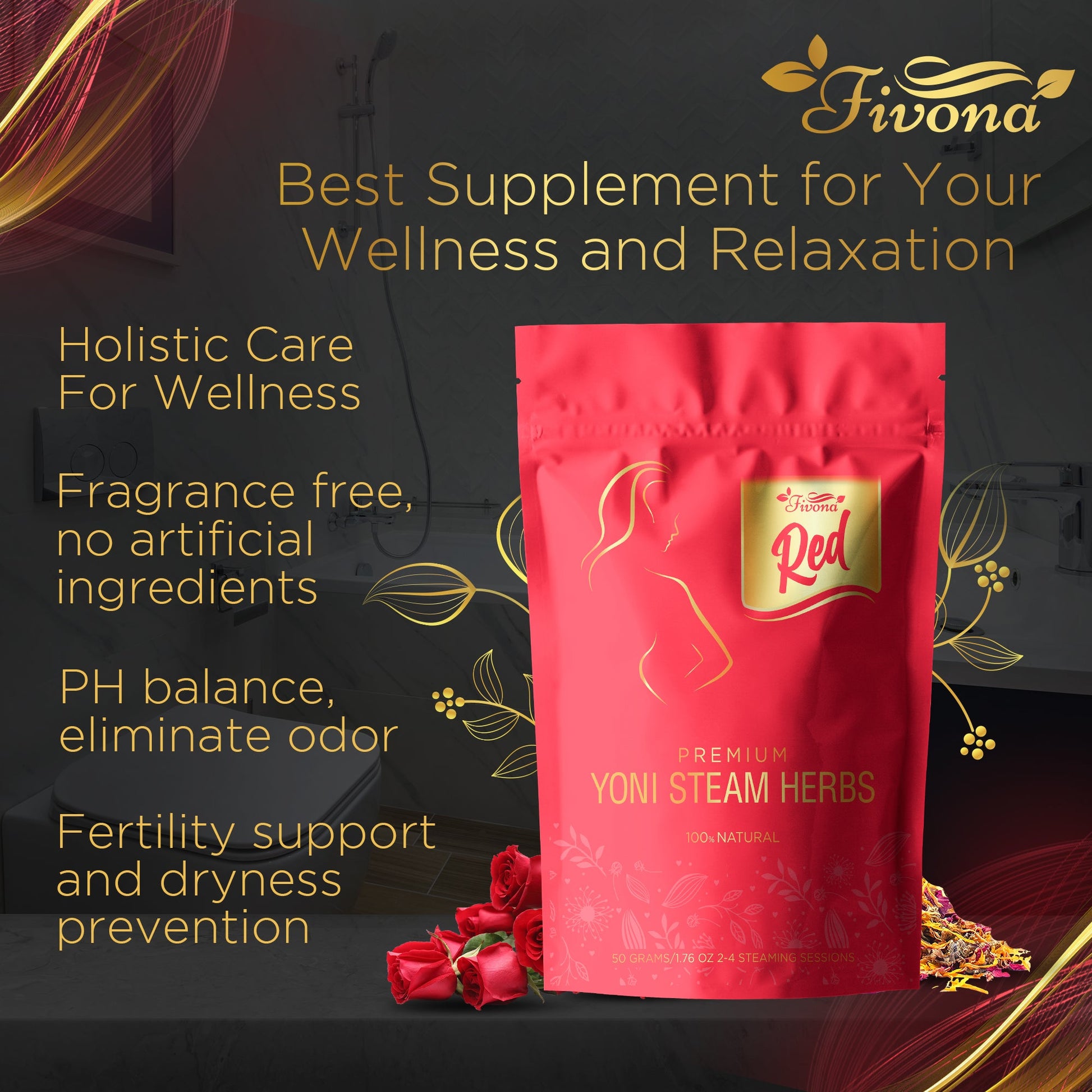 🌺 Fivona Red Premium Yoni Steam herbal blend is a luxurious product that helps women take back control of their feminine power and wellness. The carefully crafted blend uses high-quality herbs that are fresh with a beautiful aroma. Yoni steaming is a convenient and relaxing self-care treat that uses hydrating steam to soothe the yoni. Can easily be incorporated into your routine or as a gift idea for any woman looking to pamper herself.