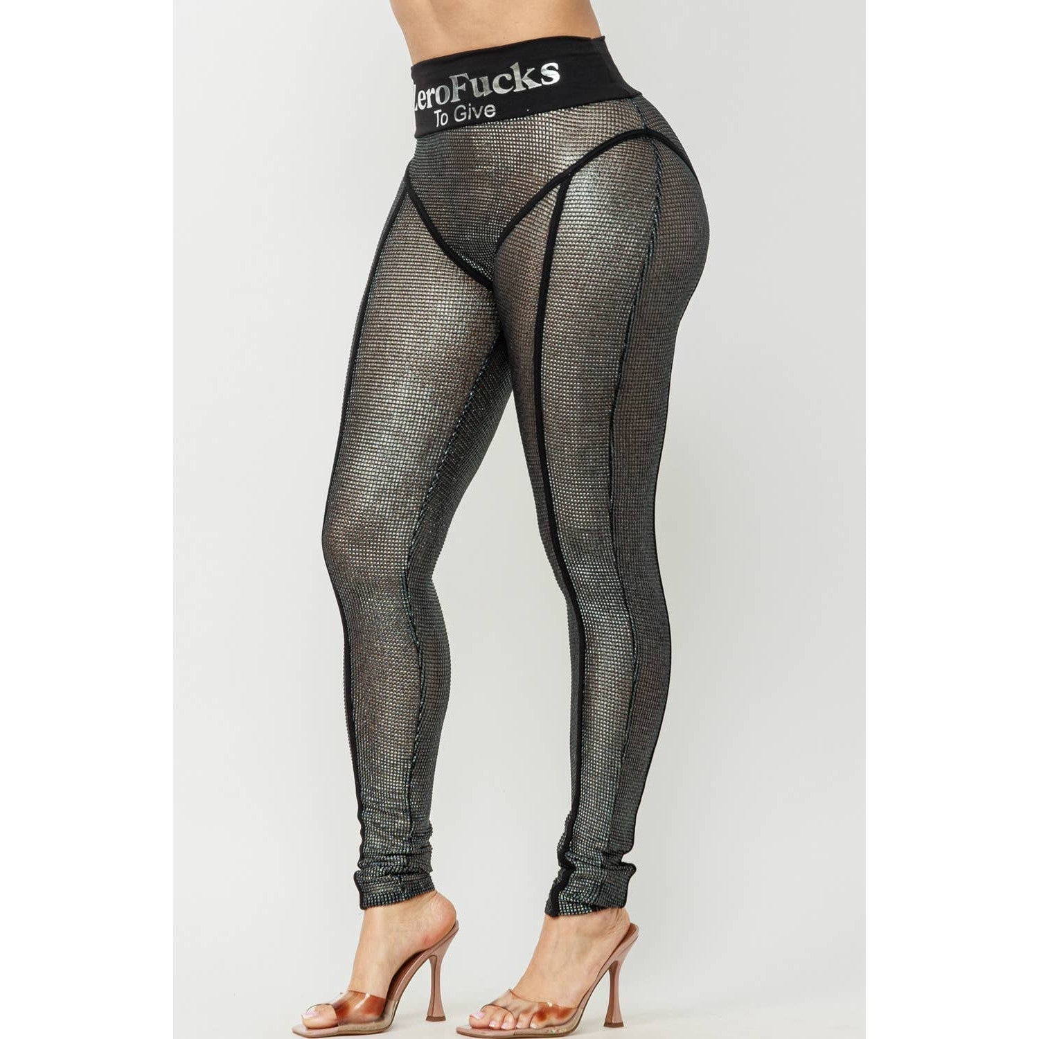 Zero Fucks to Give Metallic Mesh Leggings [Available in Sizes SM-L]
